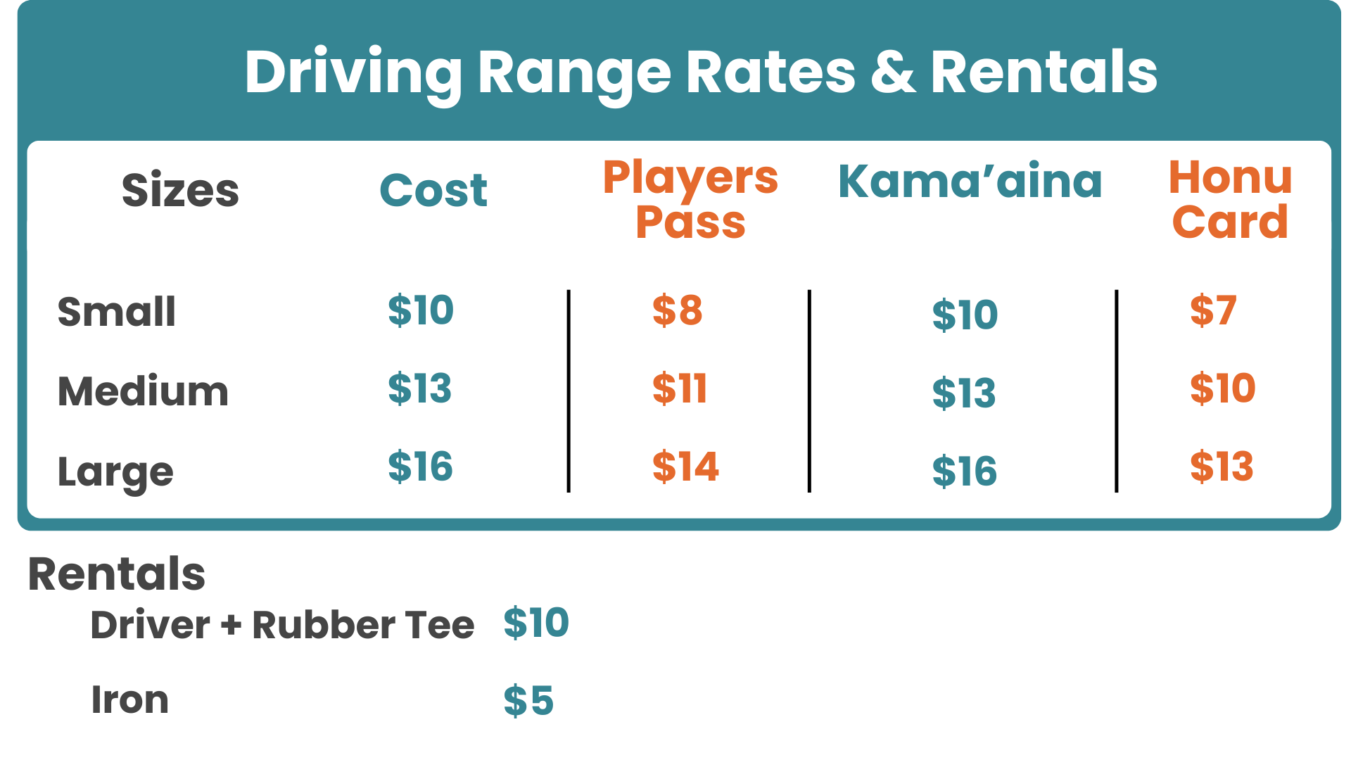 Don’t have clubs? No problem. Free clubs next to our ball machine. Be Pono and return them when you’re done.